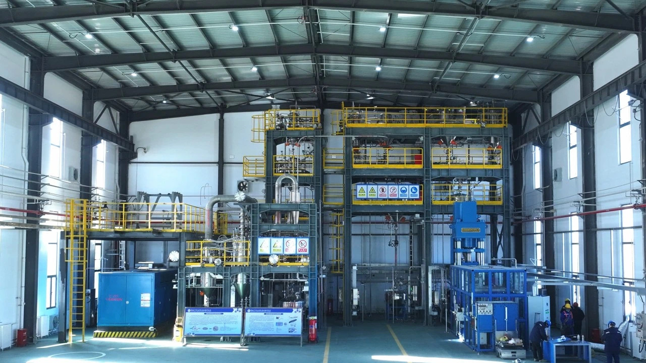 这是中国首个具有自主知识产权的百吨级氢化镁生产线,从材料研发到生产工艺均由中国科研团队自主完成。项目基于中国科学院大连化学物理研究所的专利技术,攻克了规模化制备镁基储氢材料的技术难题,实现了氢化镁的高效化、连续化、数字化生产,刷新了同类型产线的产能世界纪录。